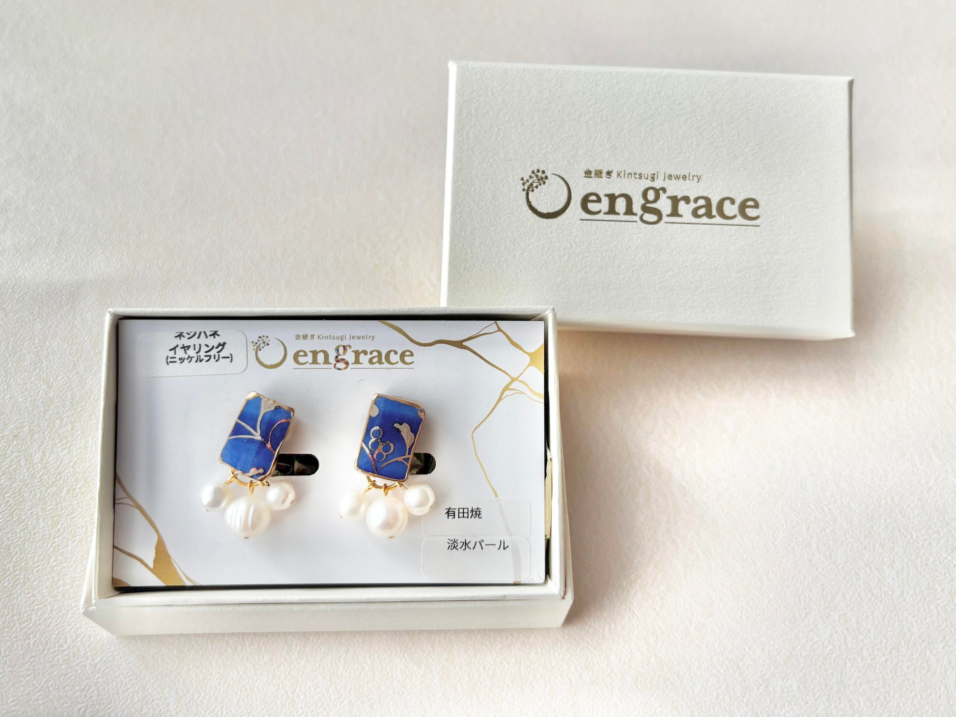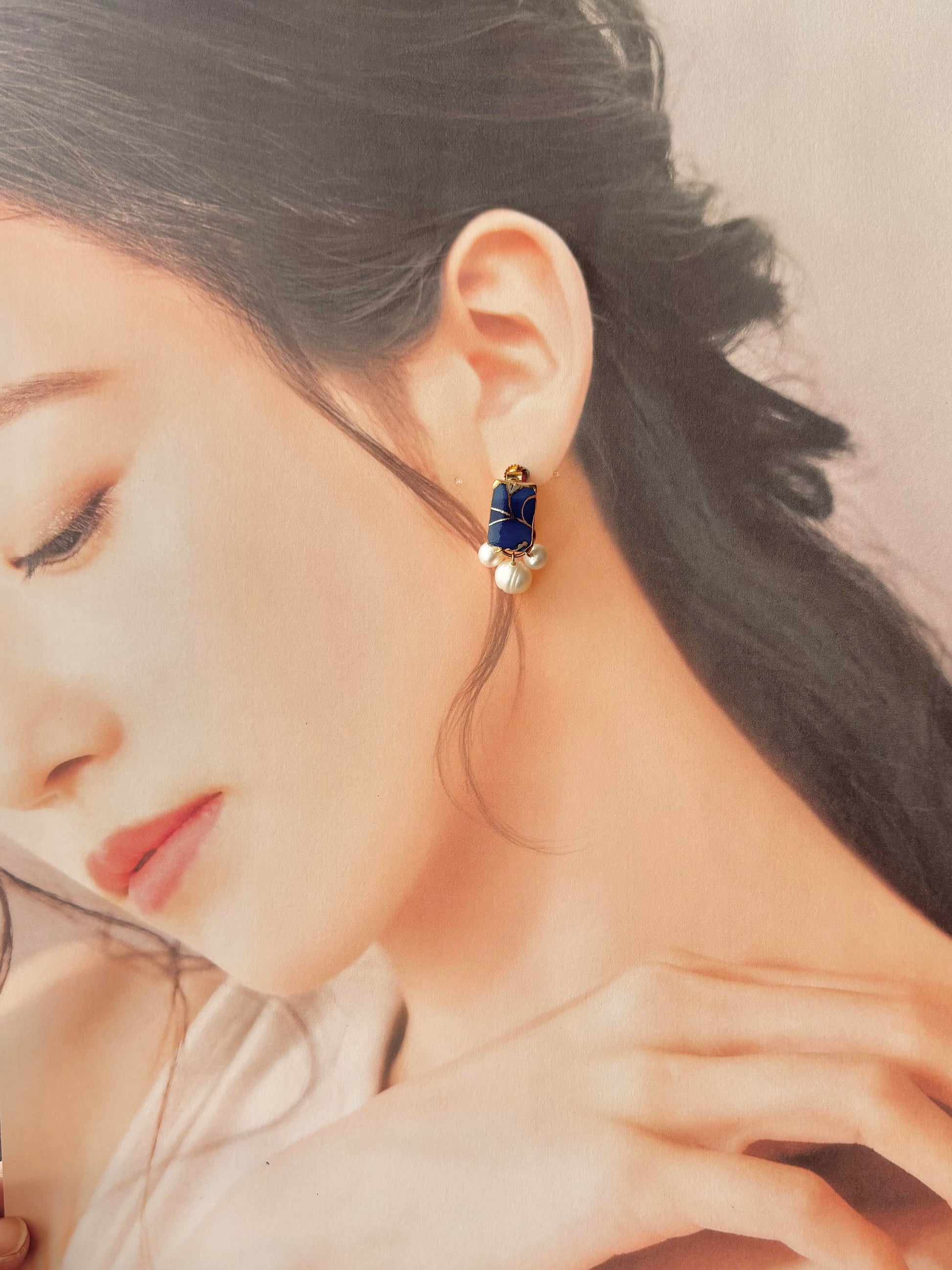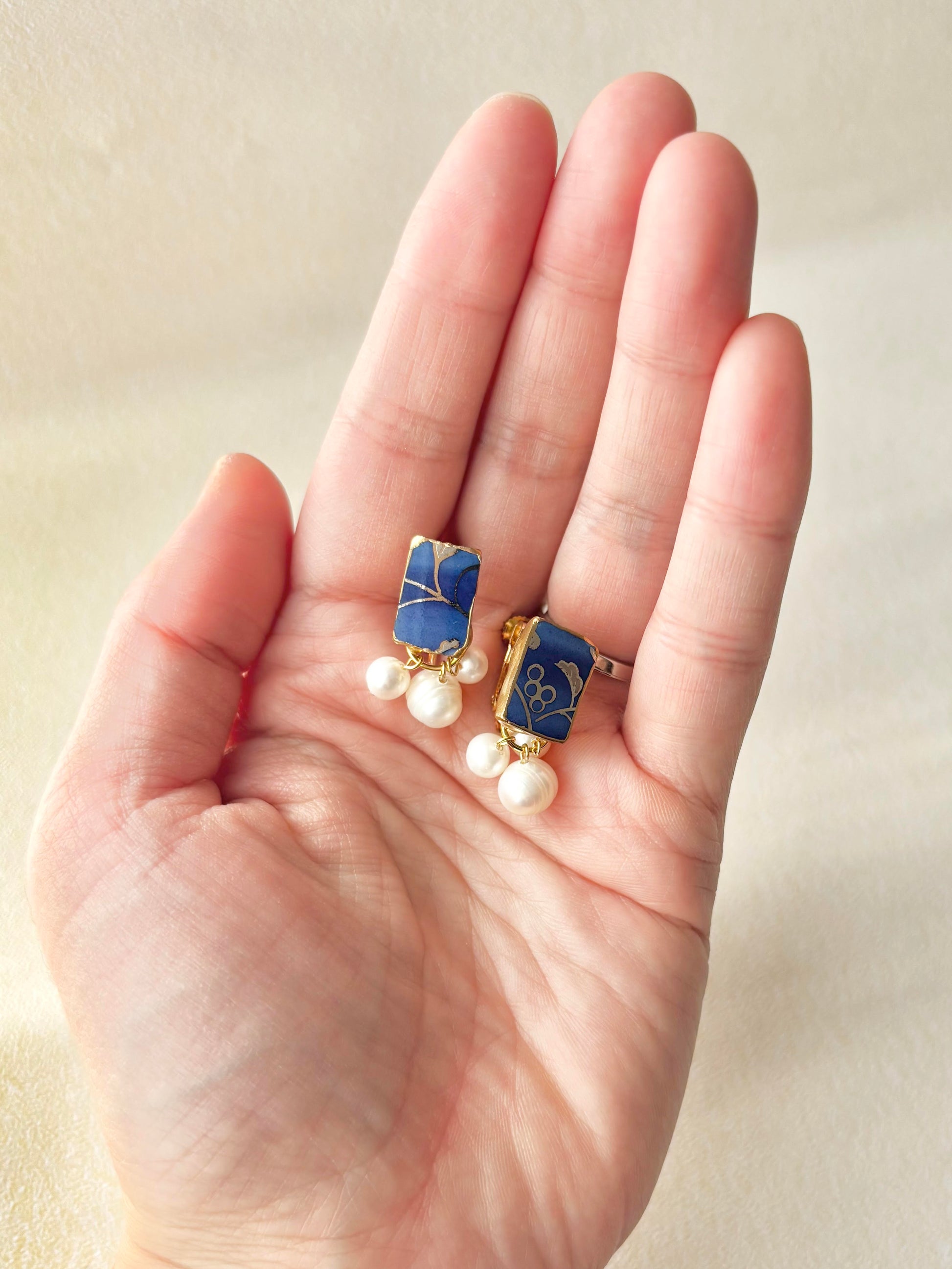 Kintsugi earrings that combine gold porcelain pieces taken from Imari pottery that is no longer used and natural stone carnelian.