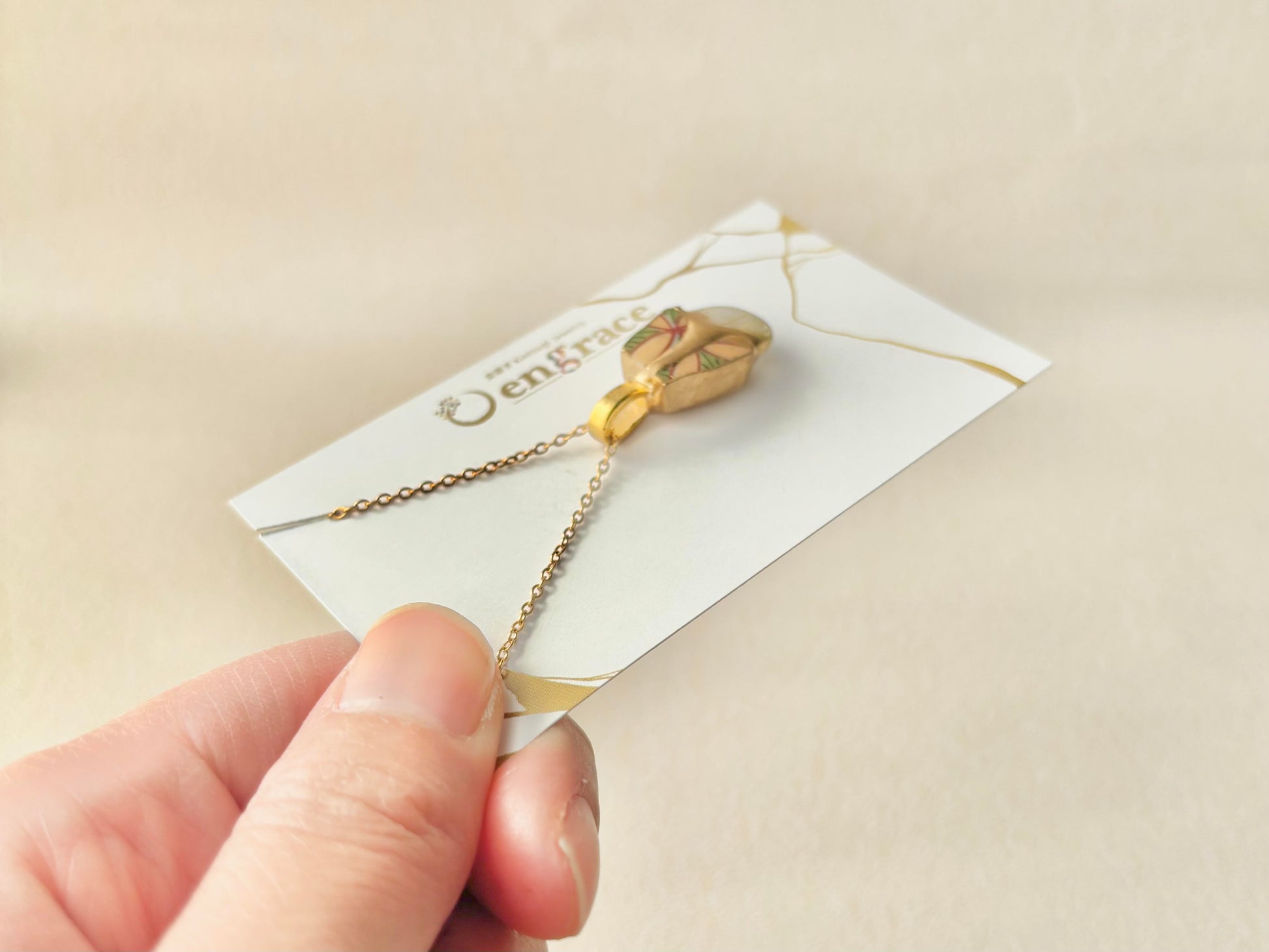 Since it is the current version of kintsugi, unlike the real lacquer made from the sap of the lacquer tree, the accessory is made with a simple kintsugi method that uses new lacquer and gold powder (brass powder) that is resistant to rashes.
