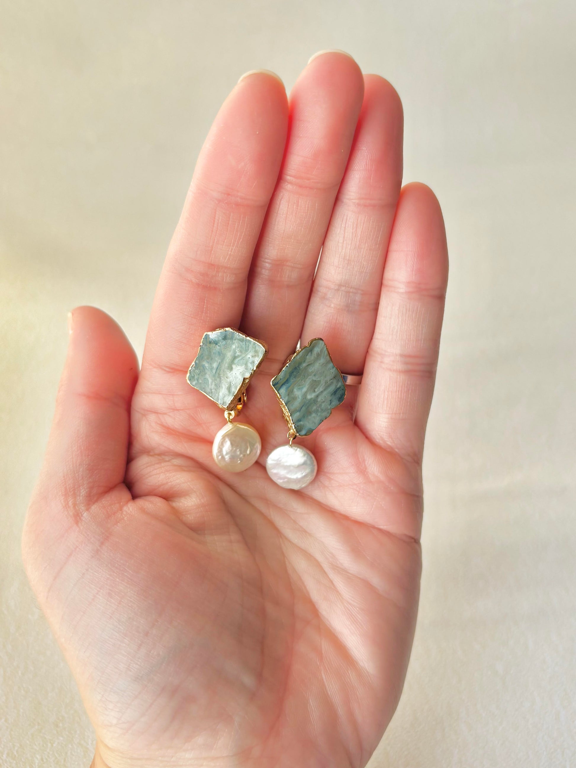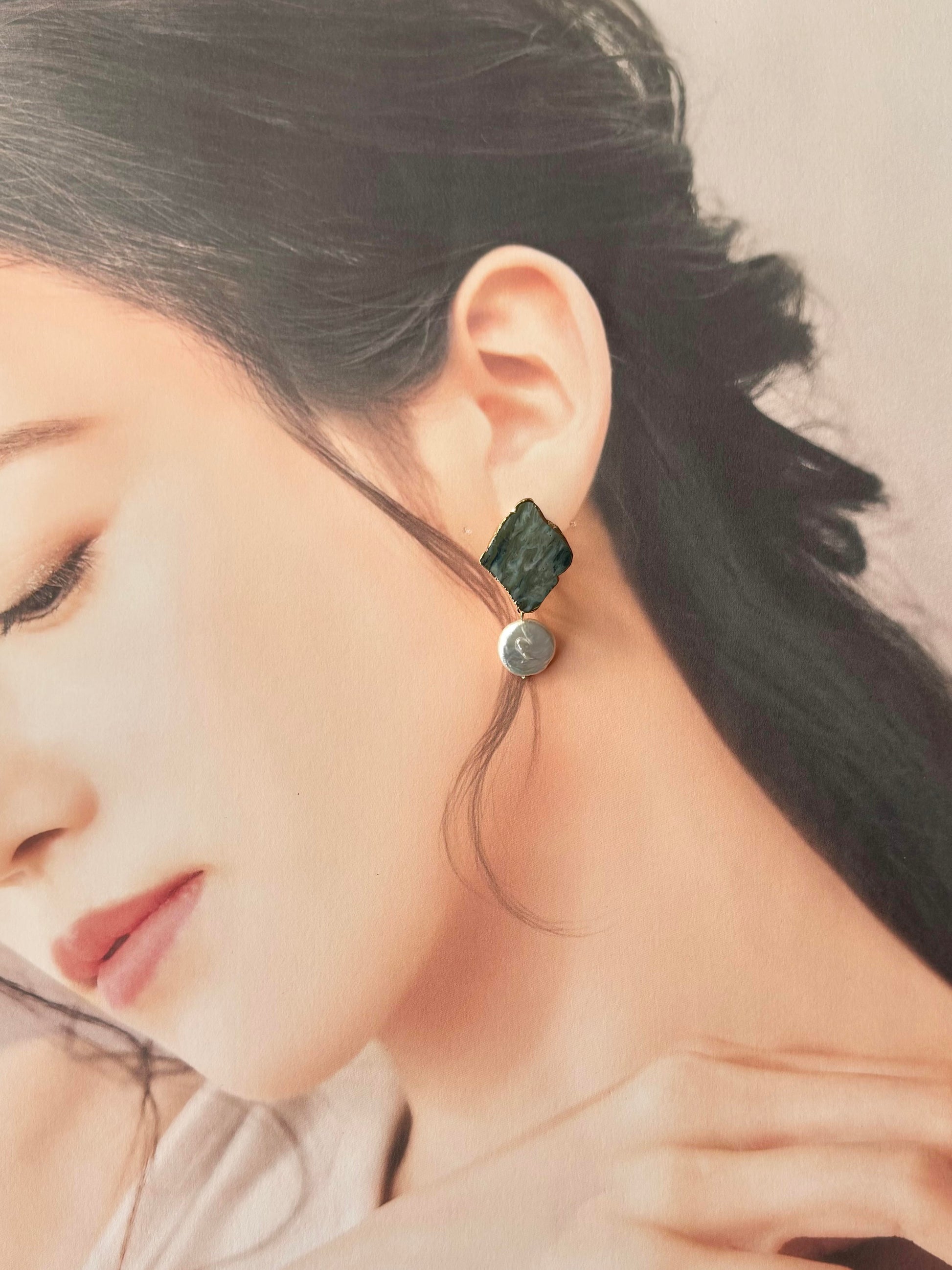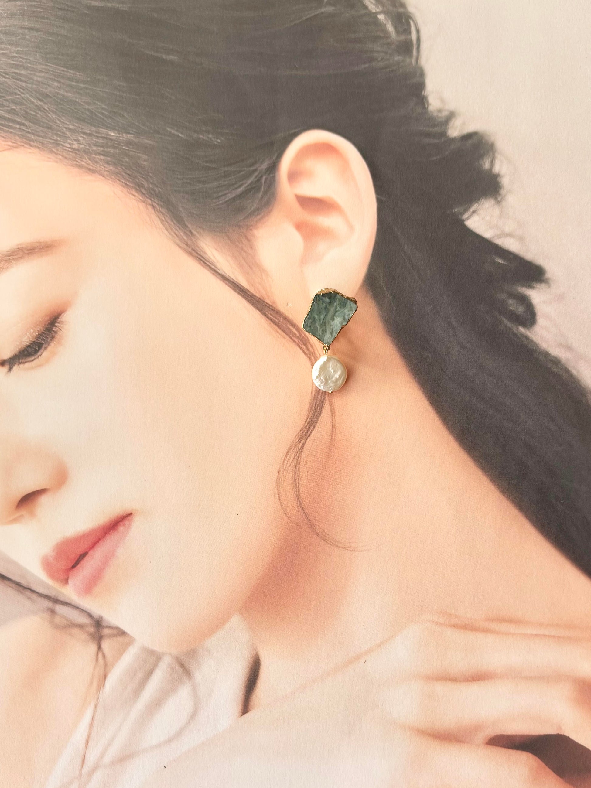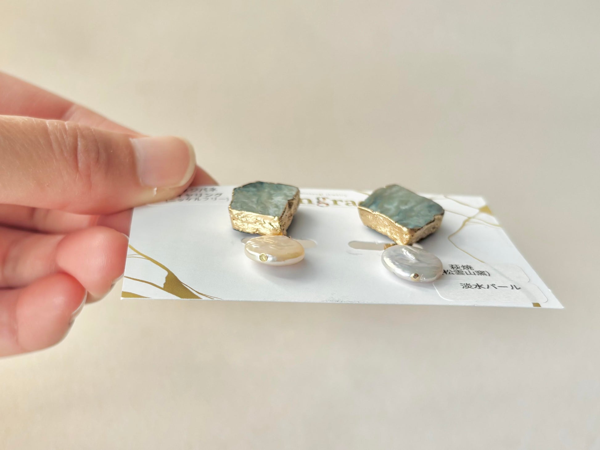 Kintsugi earrings that combine gold porcelain pieces taken from Imari pottery that is no longer used and natural stone carnelian.