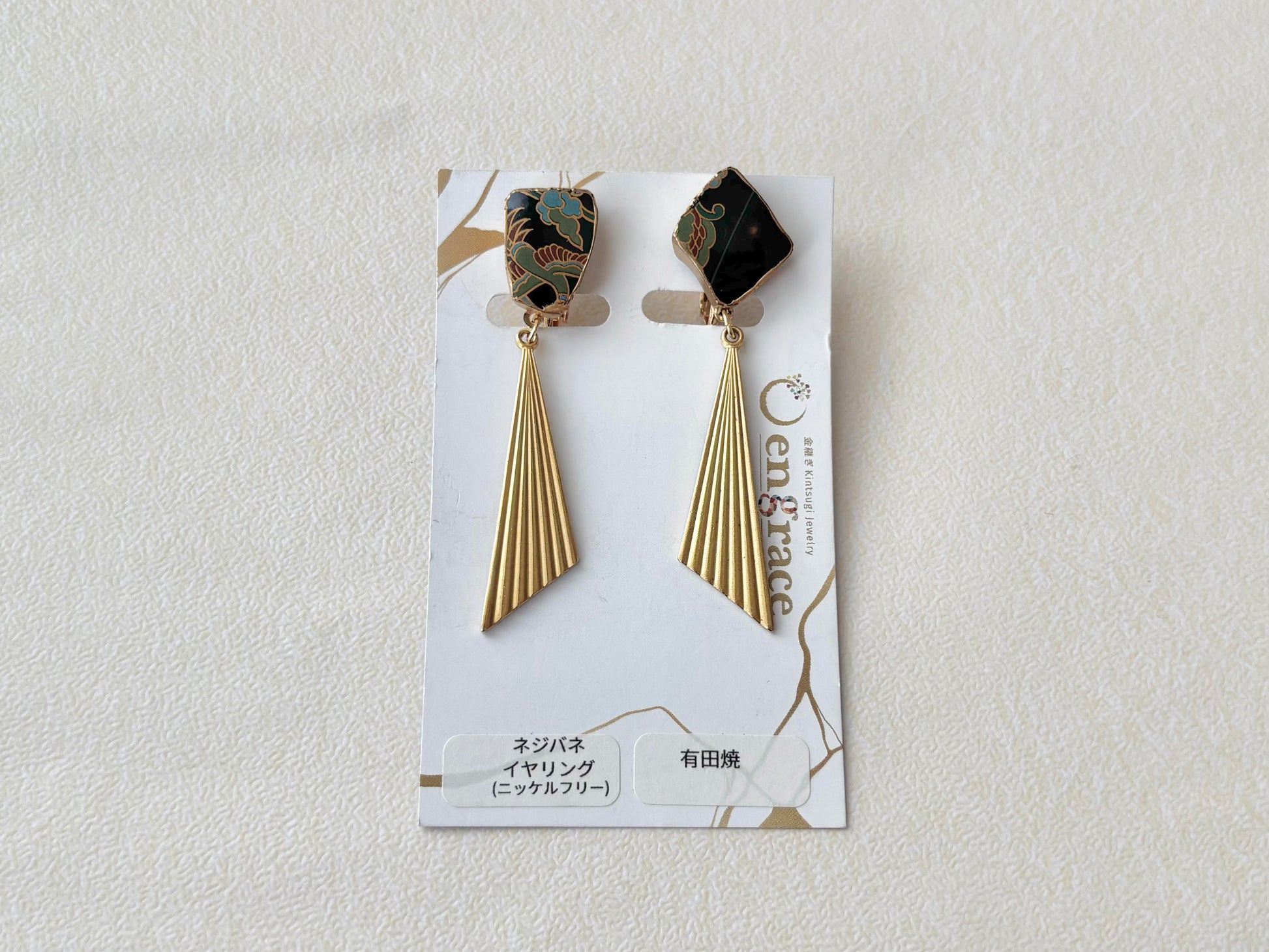 有田焼  金継ぎ ネジバネ式イヤリング 和柄 揺れる 伝統工芸 #514