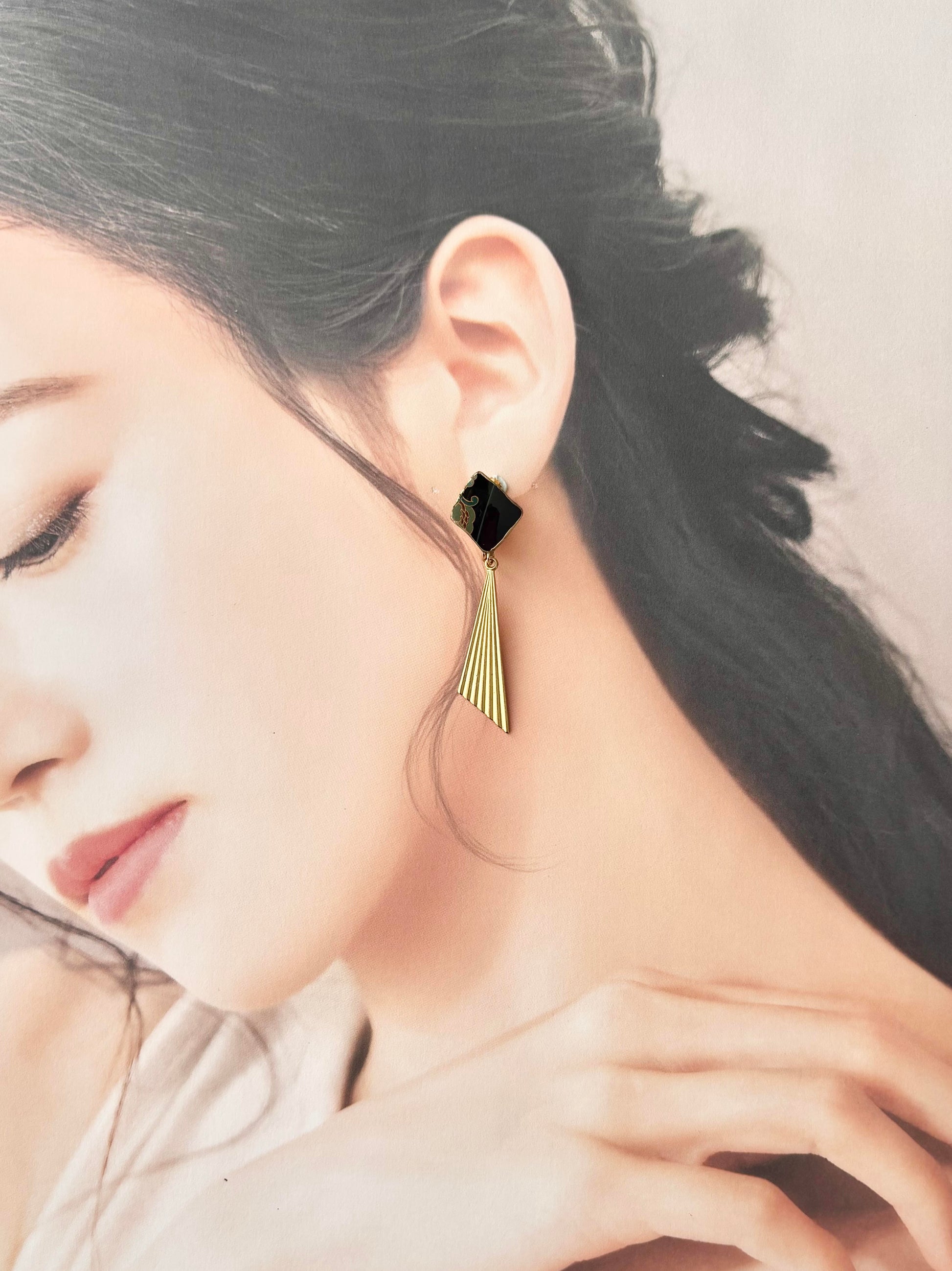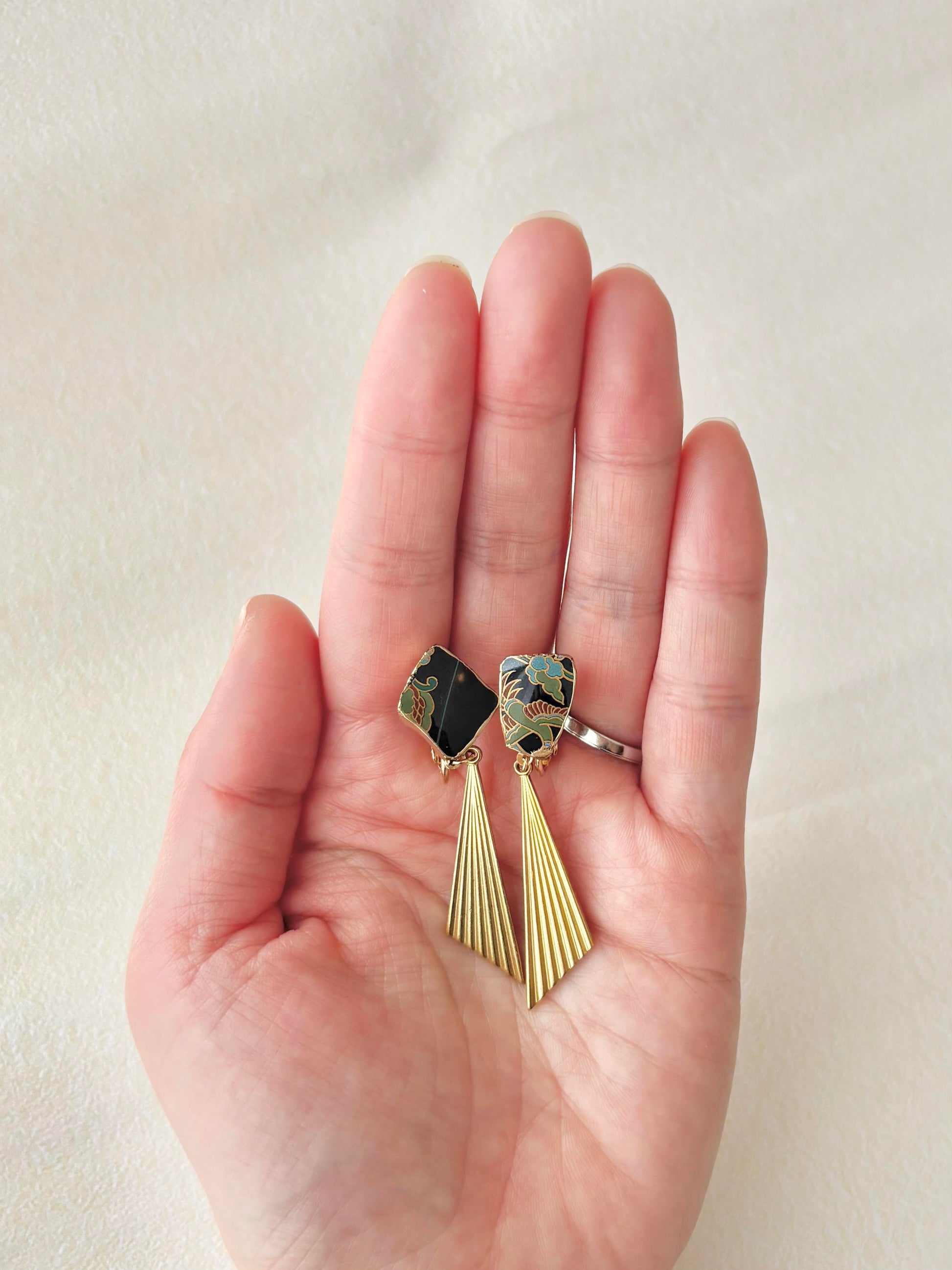 和柄の上品な陶片に存在感のあるゴールドのパーツを合わせました。