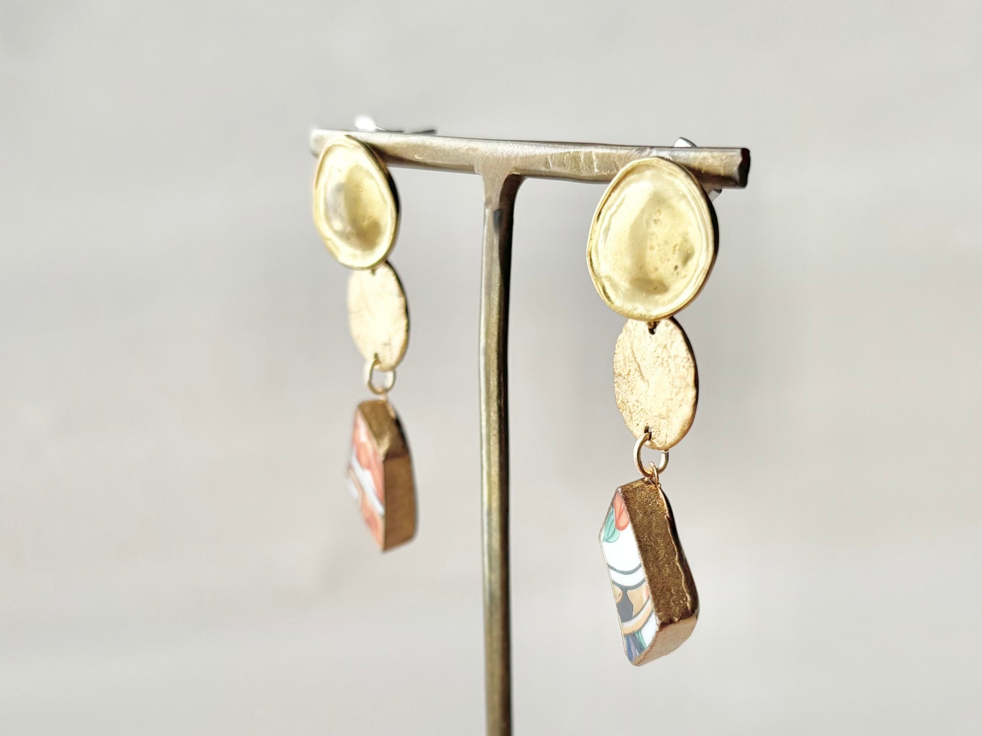 花柄やリーフ柄がちらりと見える上品な陶片とゴールドのパーツを合わせました。
