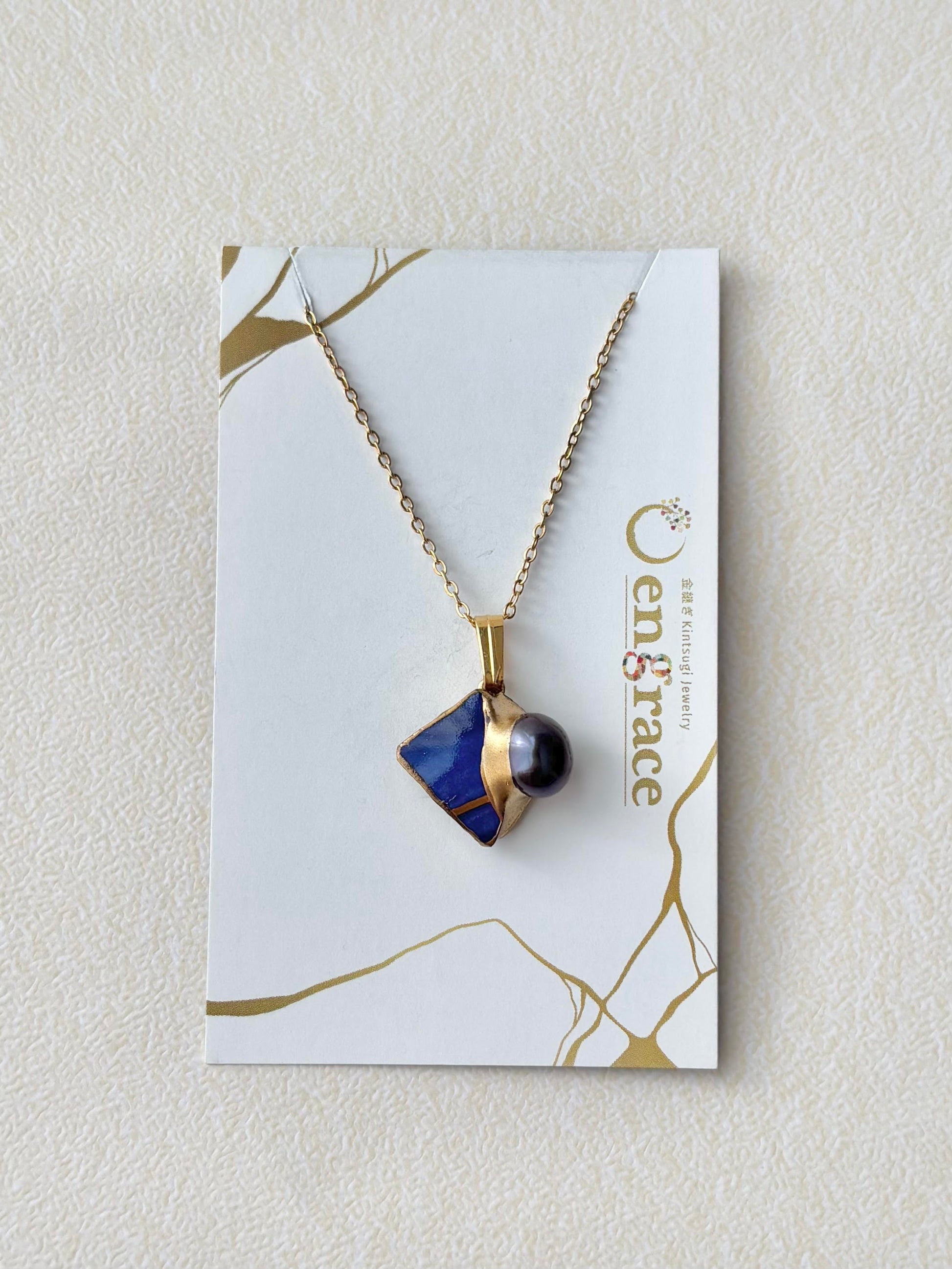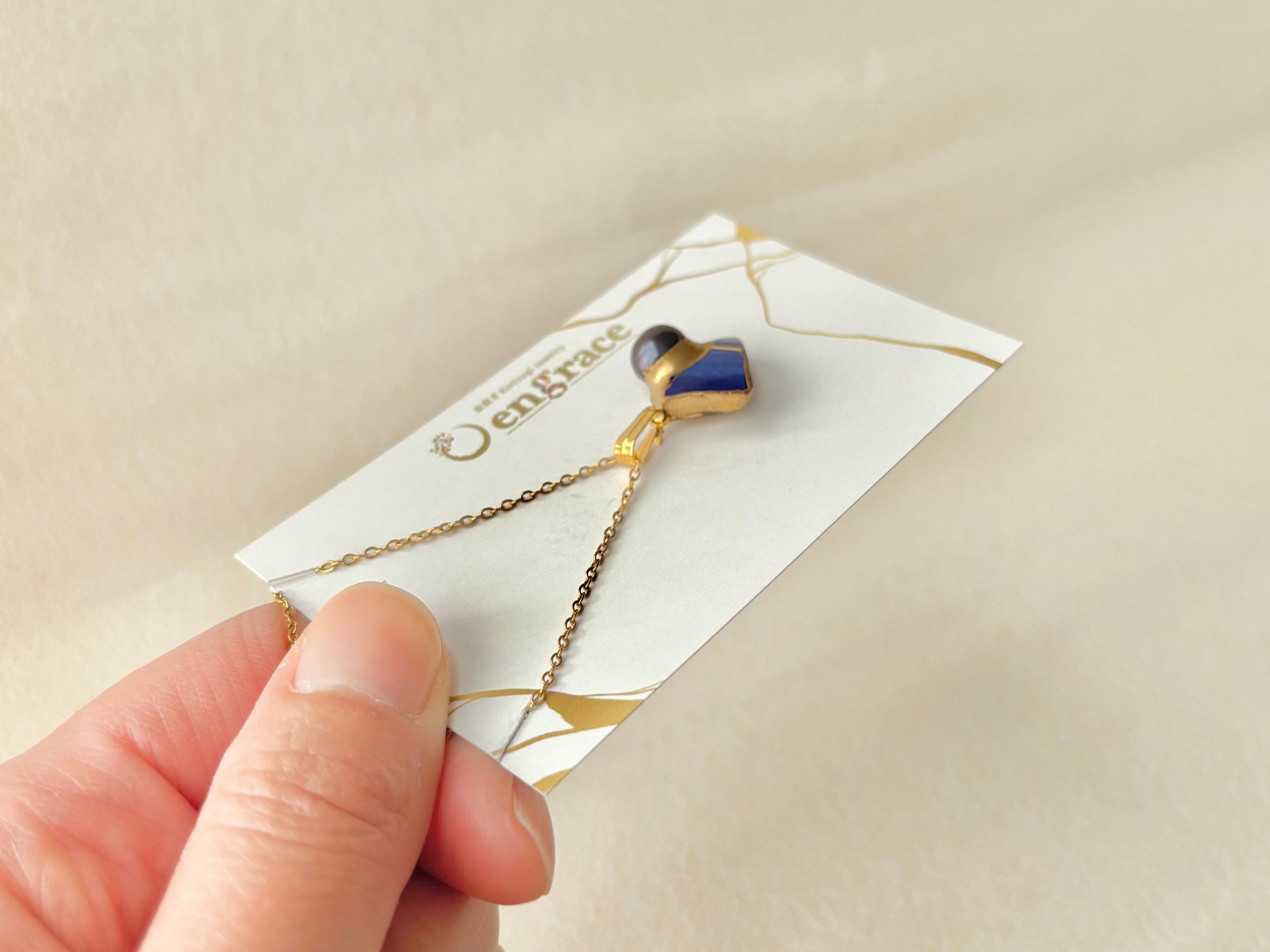 有田焼 金継ぎ ネックレス サージカルステンレスチェーン アレルギー対応 18K 青 淡水パール 天然石 伝統工芸 #412