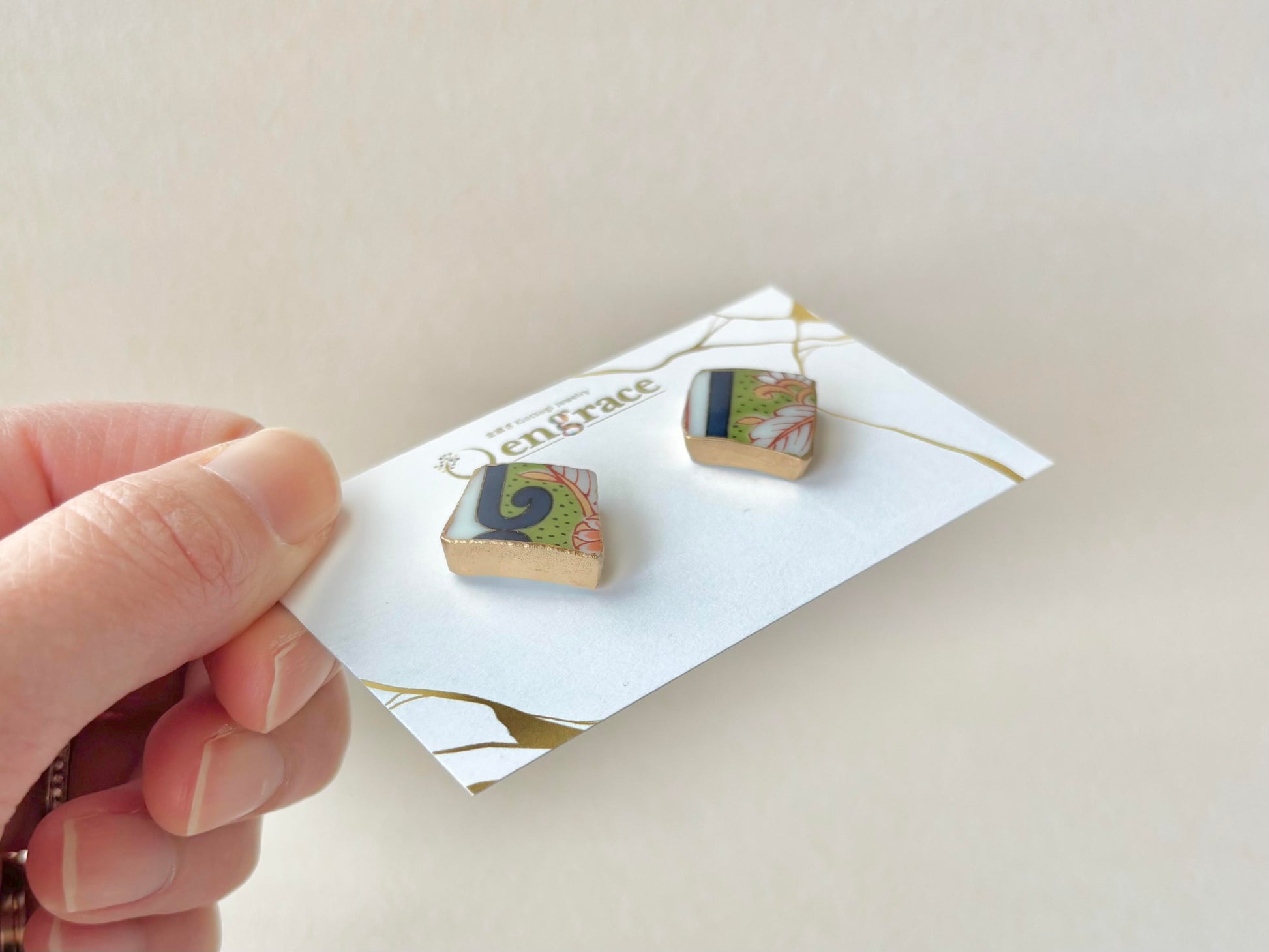 有田焼 金継ぎ ネジバネ式イヤリング ピンク 花柄 有田焼 金継ぎ スウィングチェーン 揺れる ジェエリー 伝統工芸 #a2