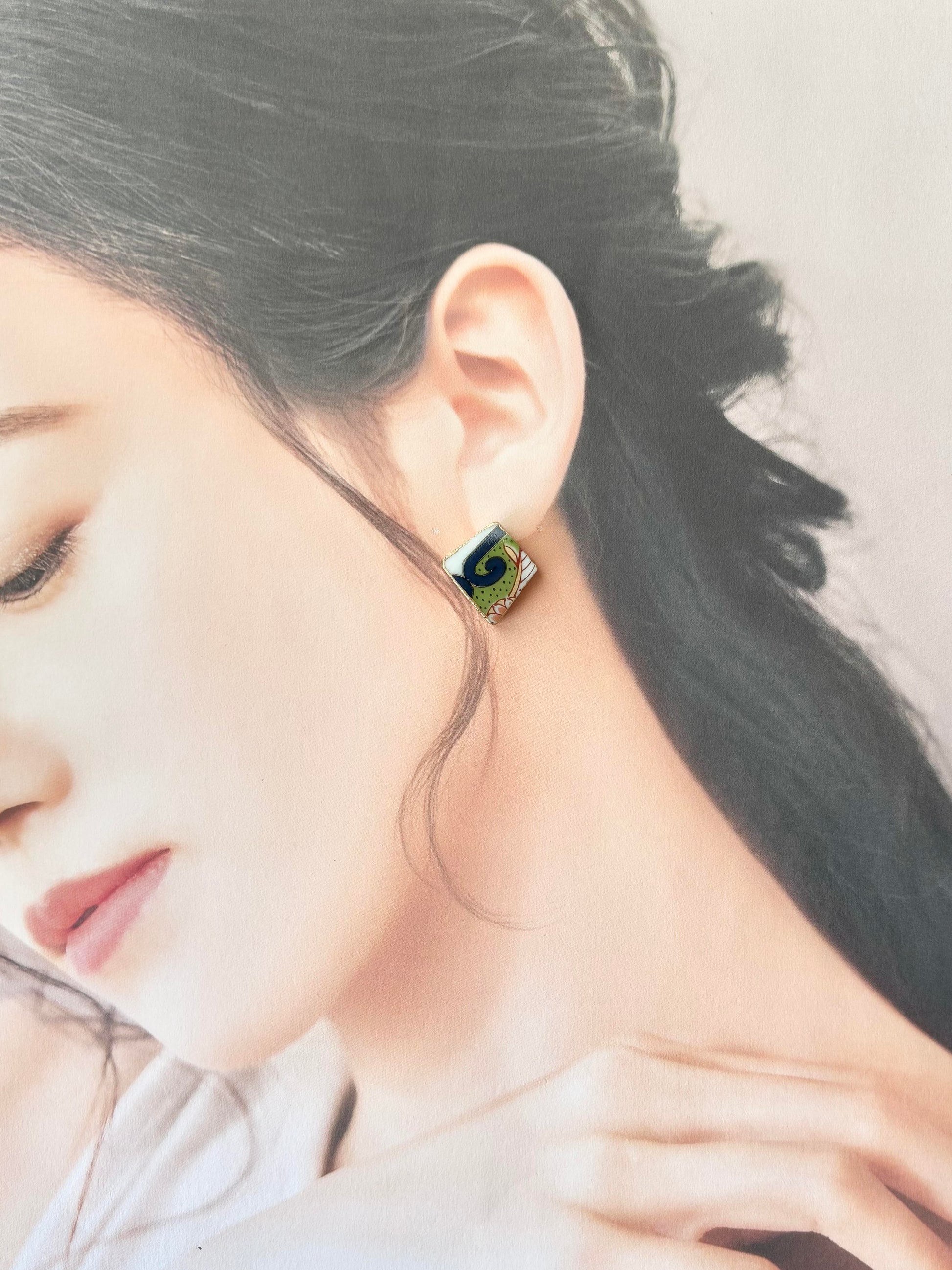 有田焼 金継ぎ ネジバネ式イヤリング ブルー オリエンタル ラリマー 天然石 伝統工芸 #a1