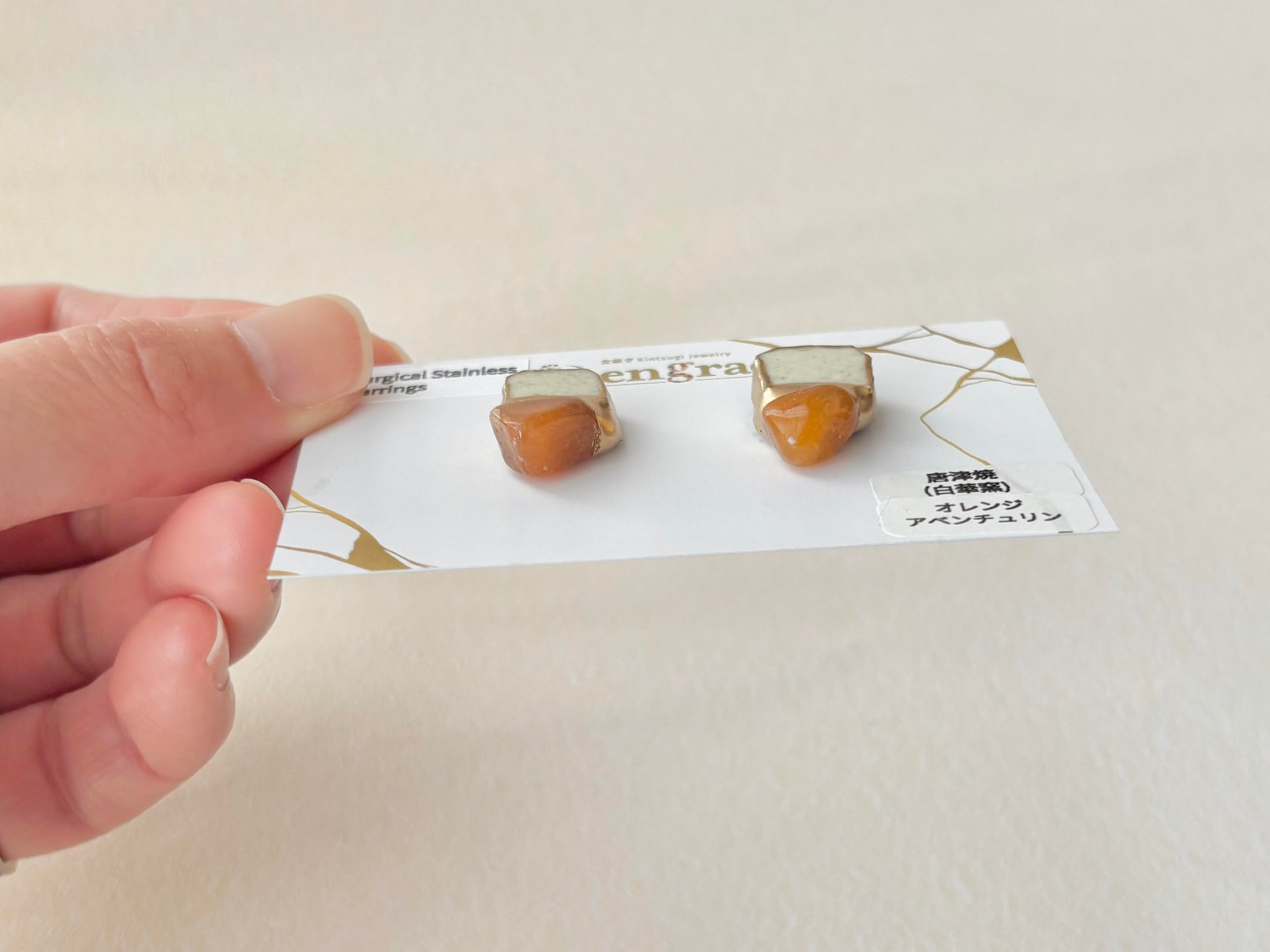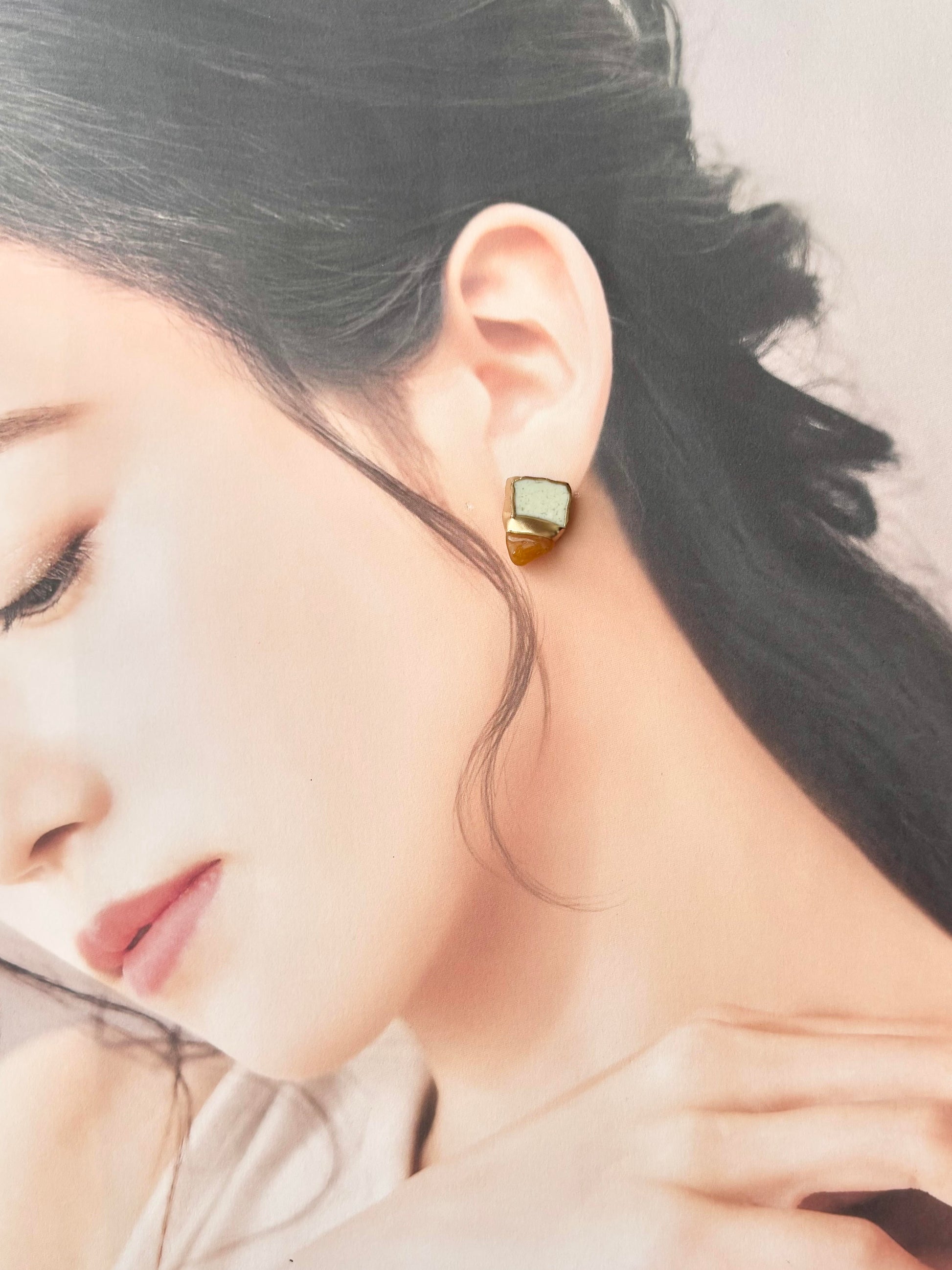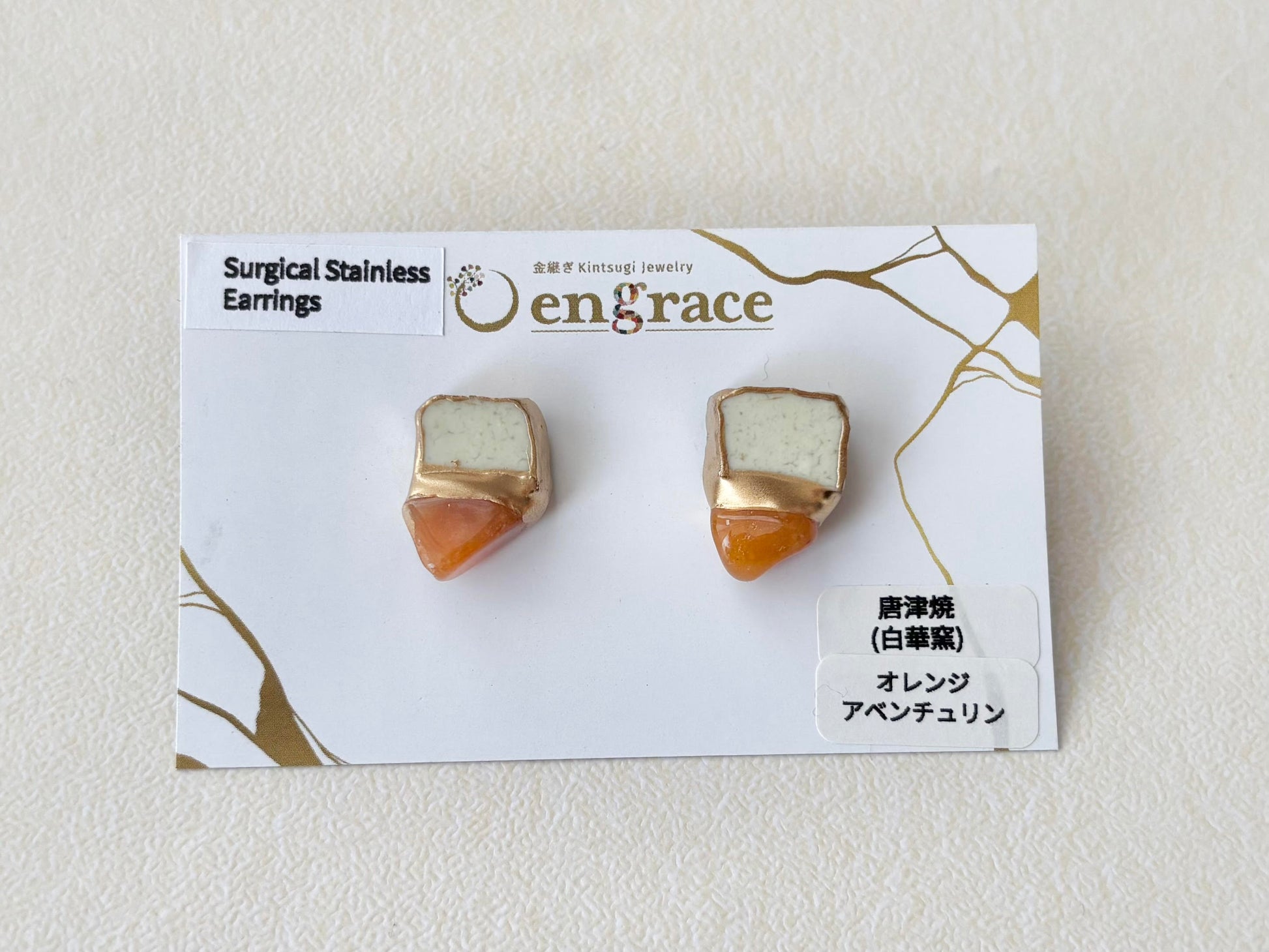 有田焼 金継ぎ ネジバネ式イヤリング ブルー オリエンタル ラリマー 天然石 伝統工芸 #a1