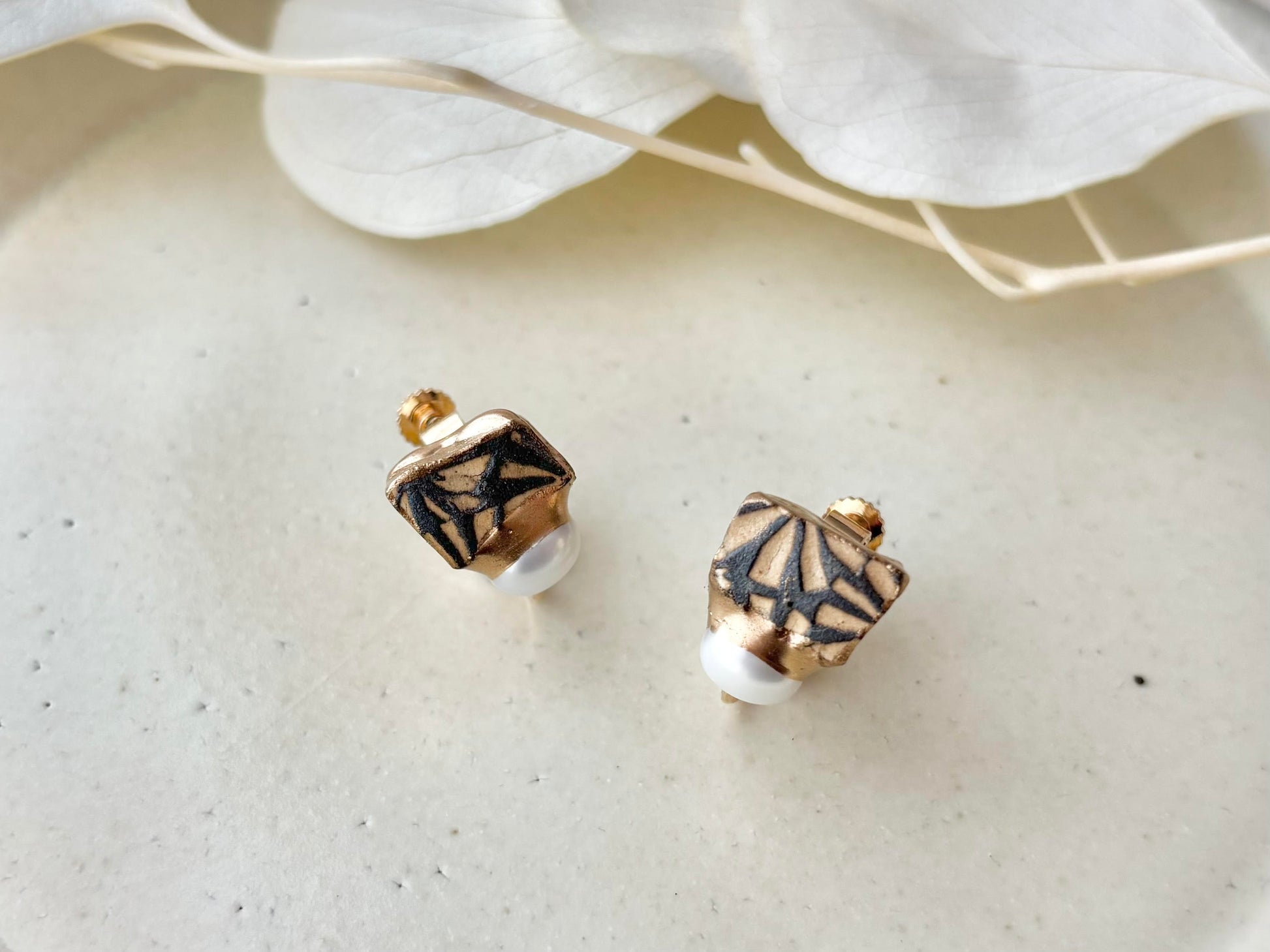 有田焼 金継ぎ ネジバネ式イヤリング ブルー オリエンタル ラリマー 天然石 伝統工芸 #a1
