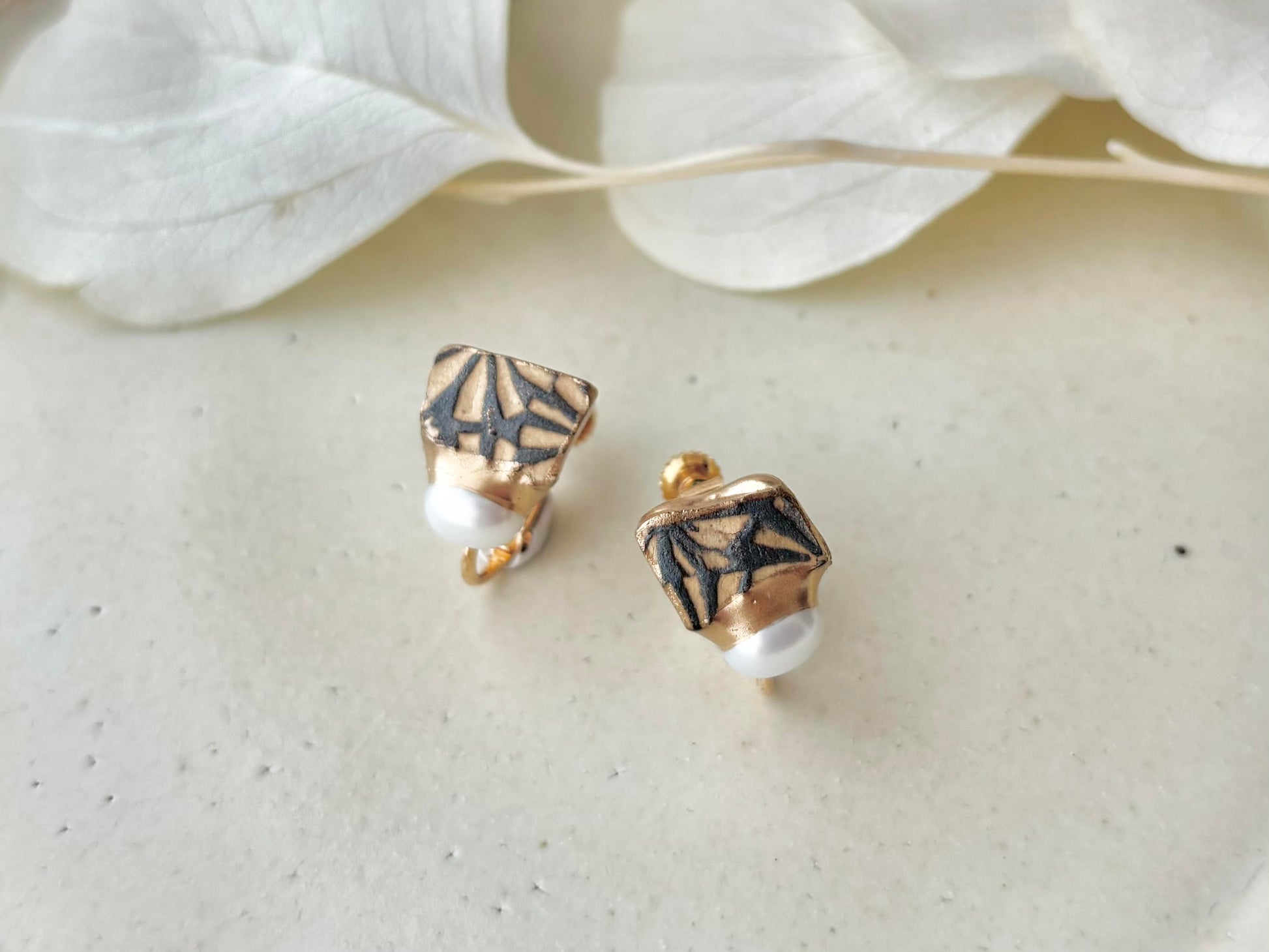 有田焼 金継ぎ ネジバネ式イヤリング ピンク 花柄 有田焼 金継ぎ スウィングチェーン 揺れる ジェエリー 伝統工芸 #a2