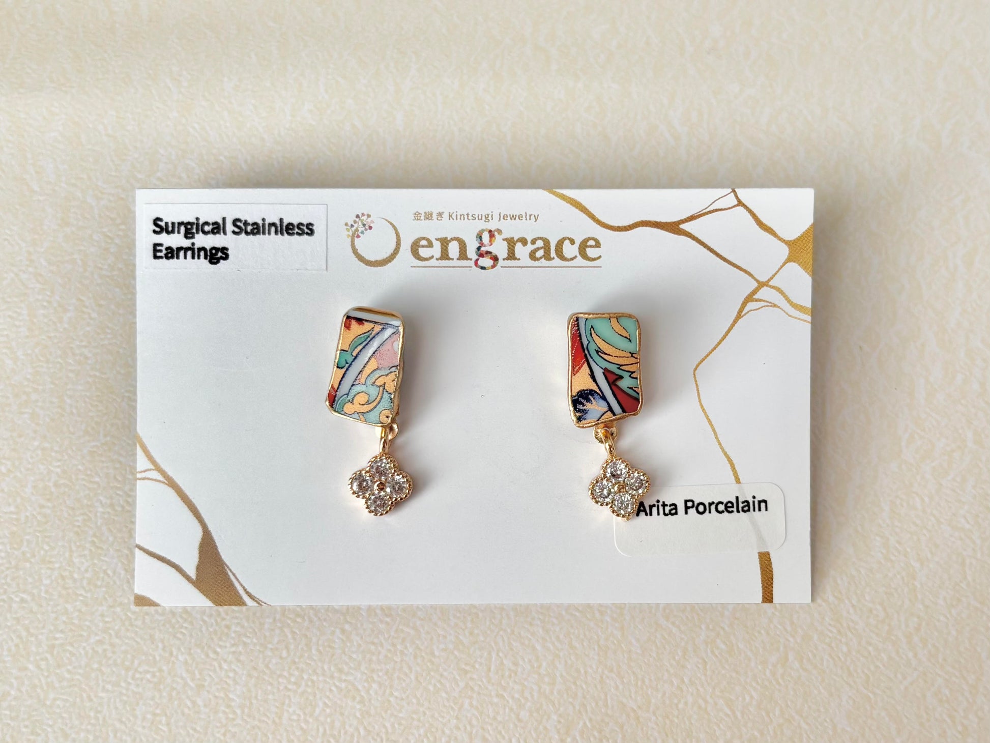 有田焼  金継ぎ サージカルステンレスピアス リーフ柄 和柄 揺れる 伝統工芸 #415