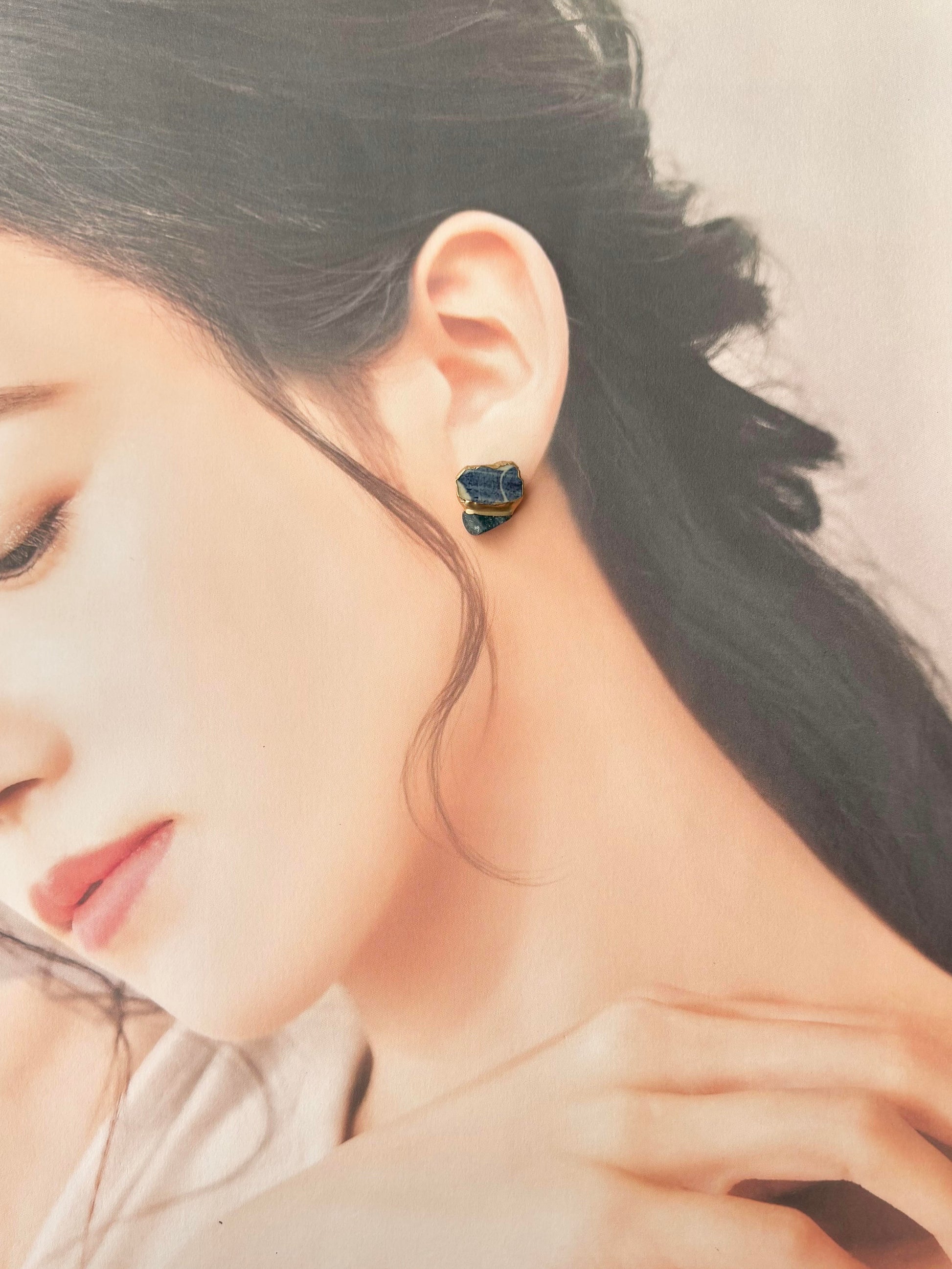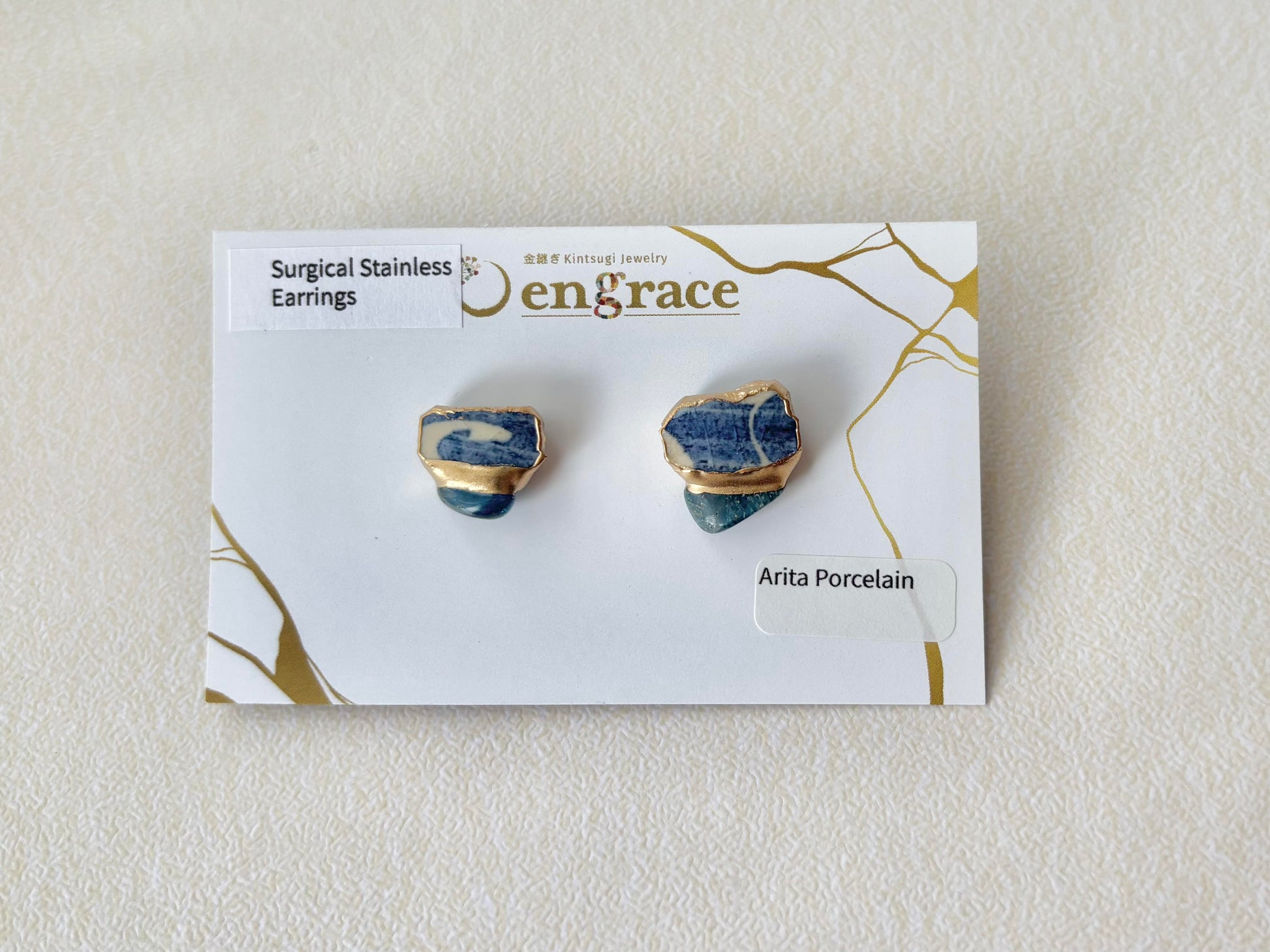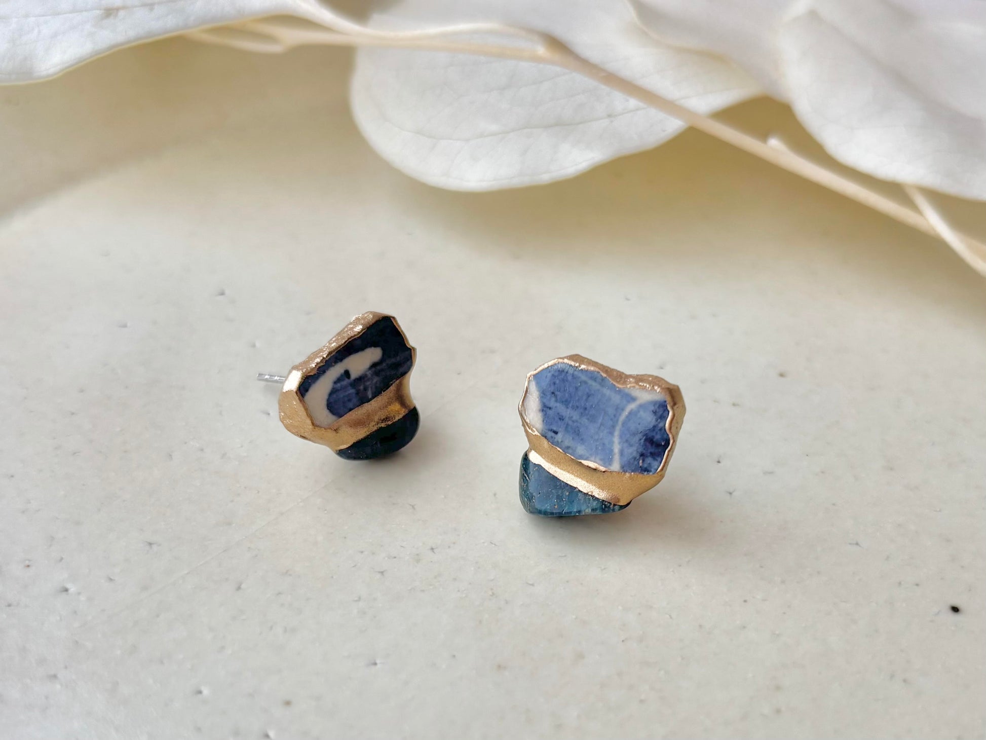 有田焼  金継ぎ サージカルステンレスピアス 青 白 アパタイト 天然石 伝統工芸 #378
