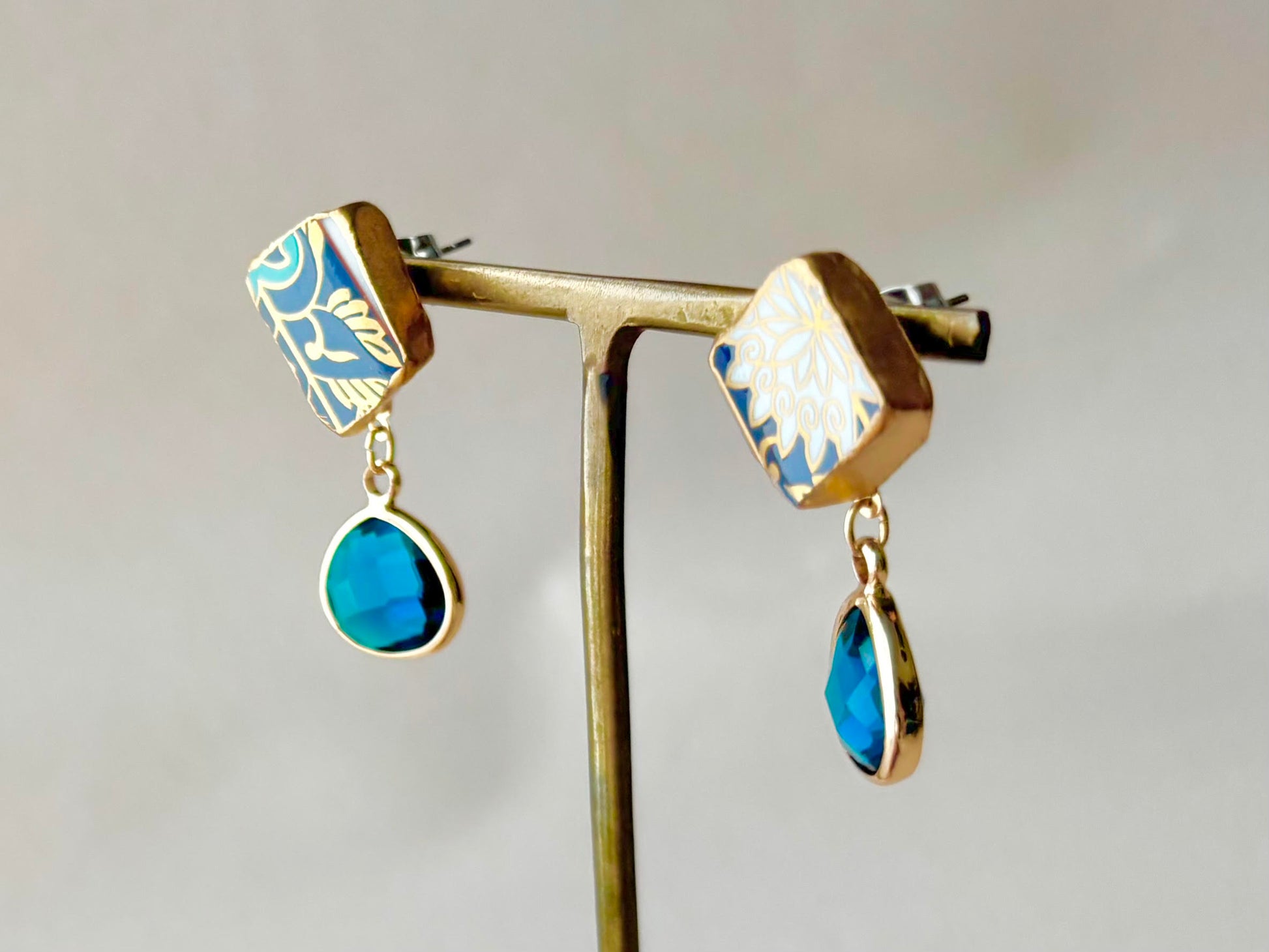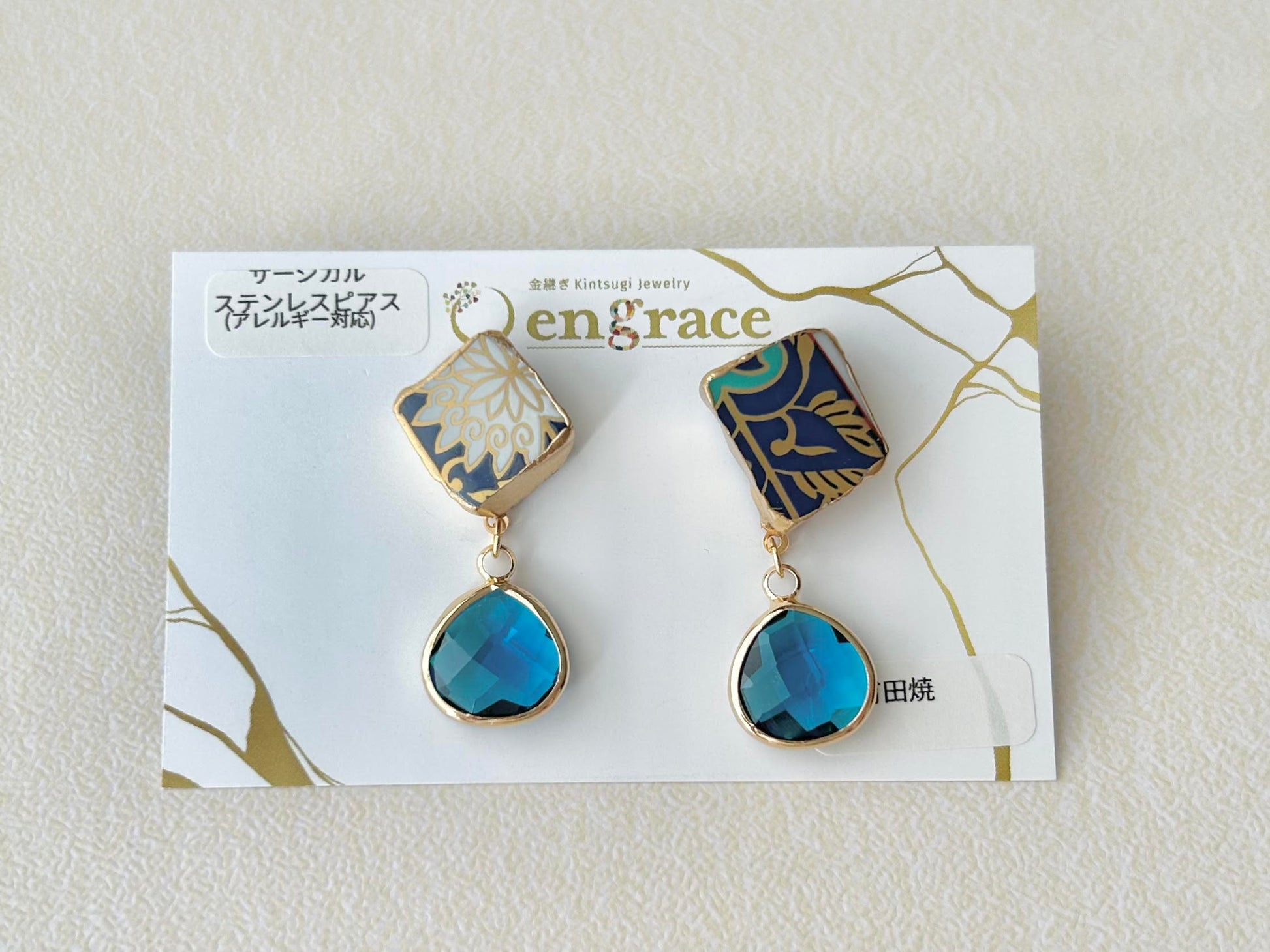 有田焼  金継ぎ サージカルステンレスピアス リーフ柄 花柄 揺れる 伝統工芸 #324