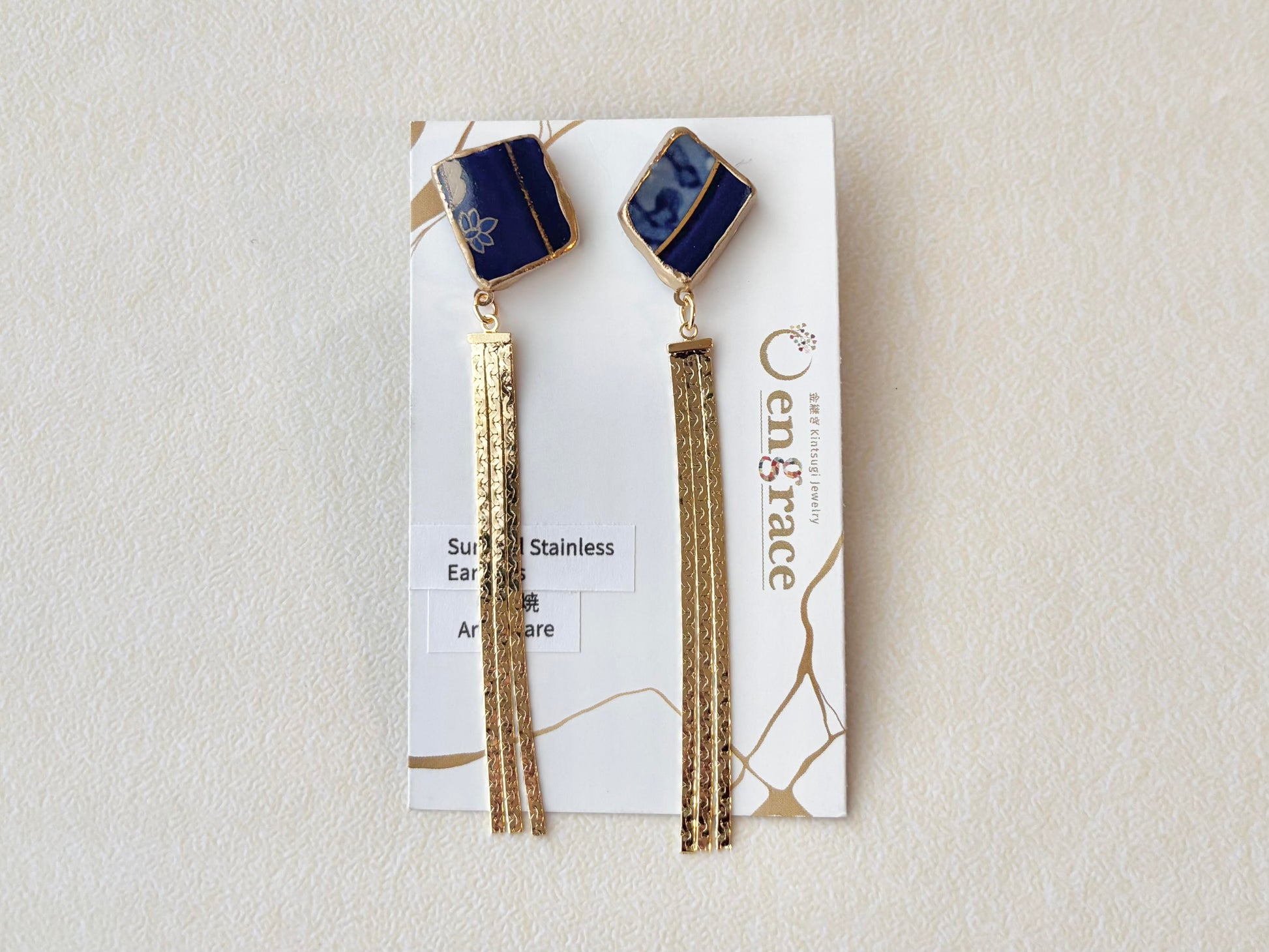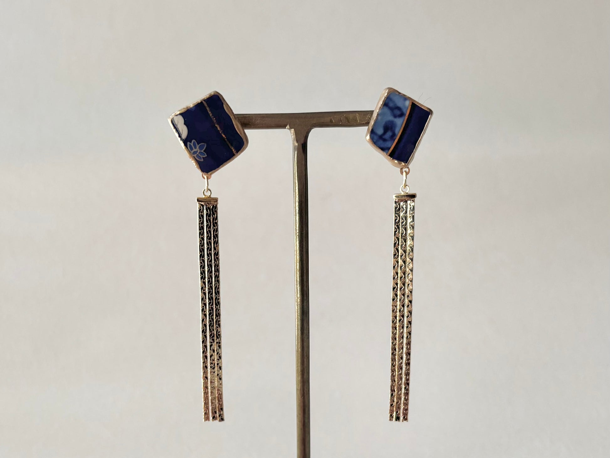 有田焼 金継ぎ ネジバネ式イヤリング ブルー オリエンタル ラリマー 天然石 伝統工芸 #a1
