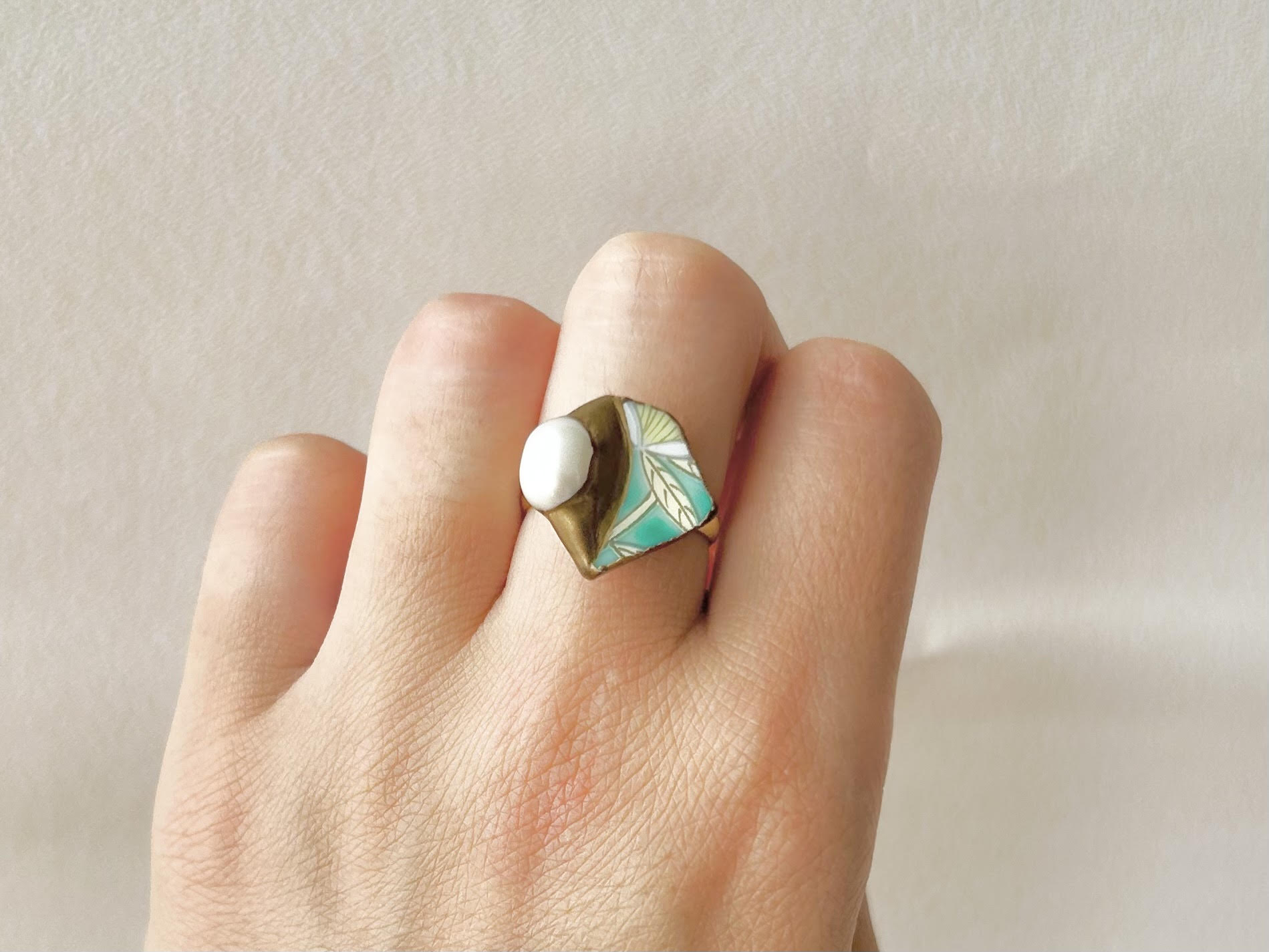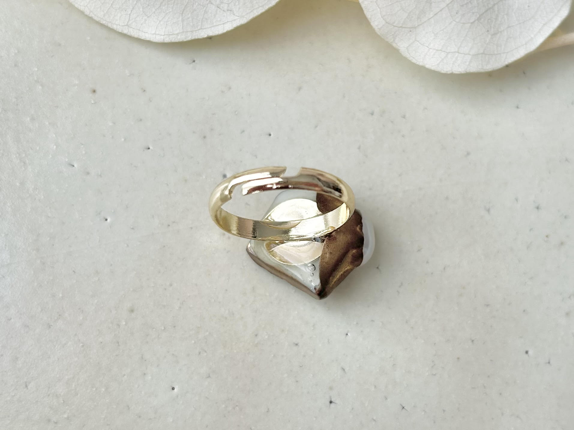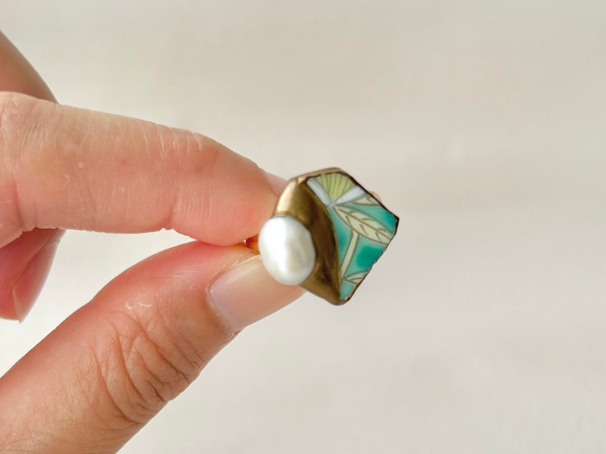 ①信楽陶土 金継ぎ ピアス イヤリング / 淡水パール シェル アクリル レトロモダン 大きなピアス 伝統工芸