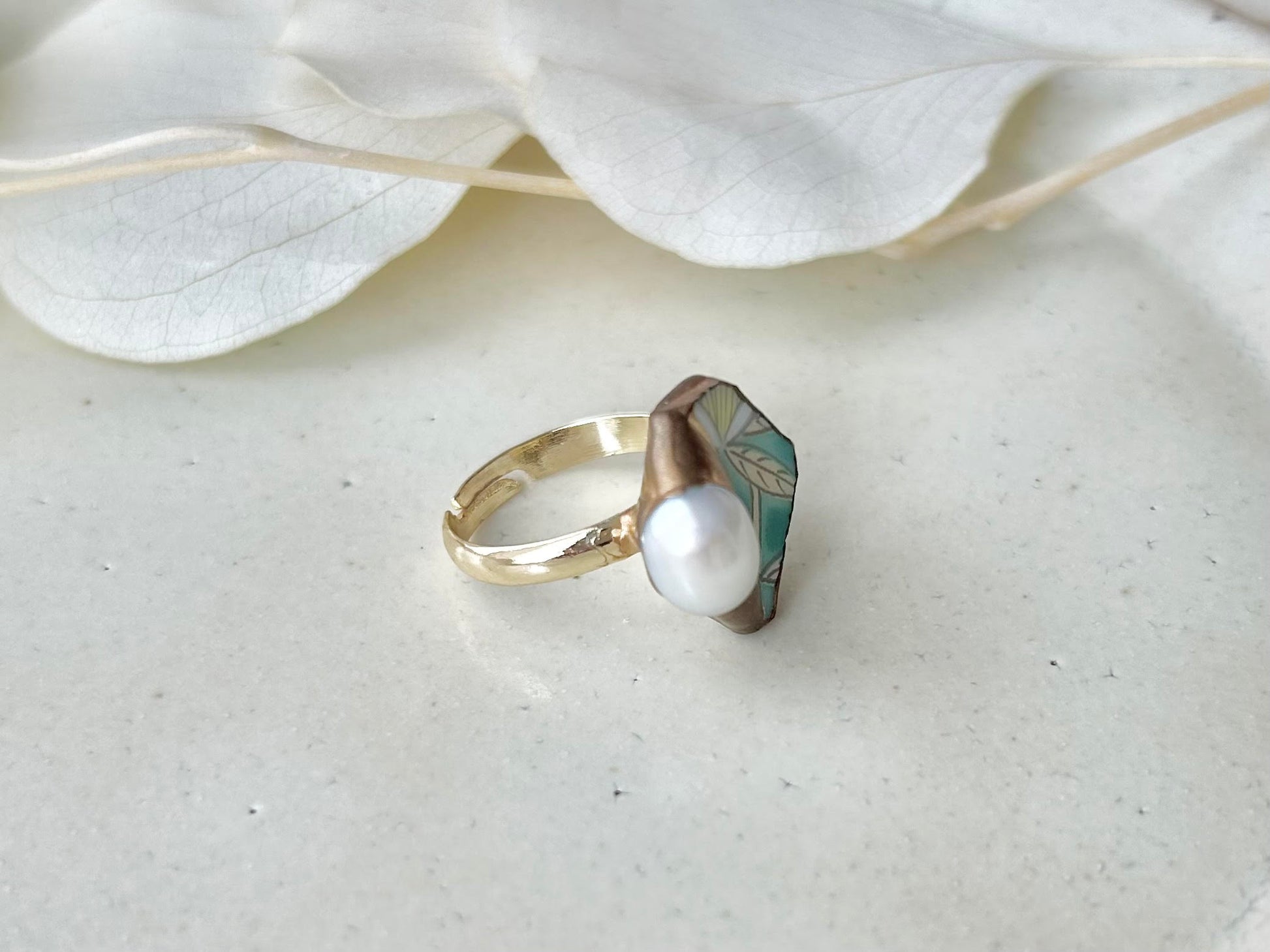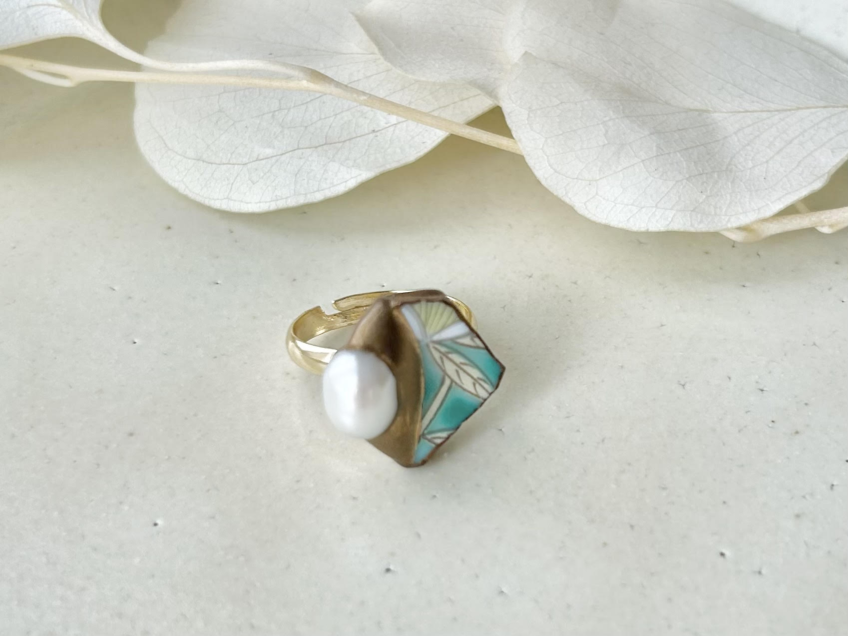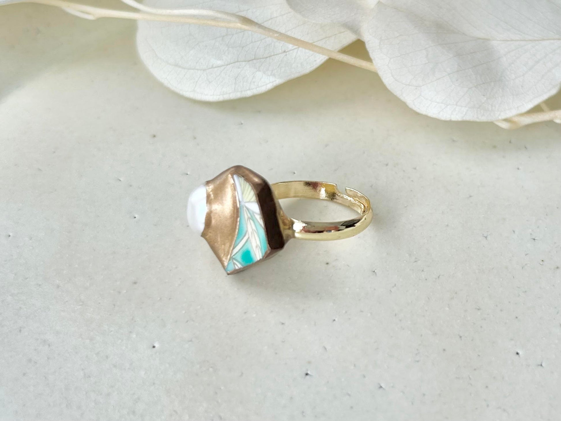 ①信楽陶土 金継ぎ ピアス イヤリング / 淡水パール シェル アクリル レトロモダン 大きなピアス 伝統工芸