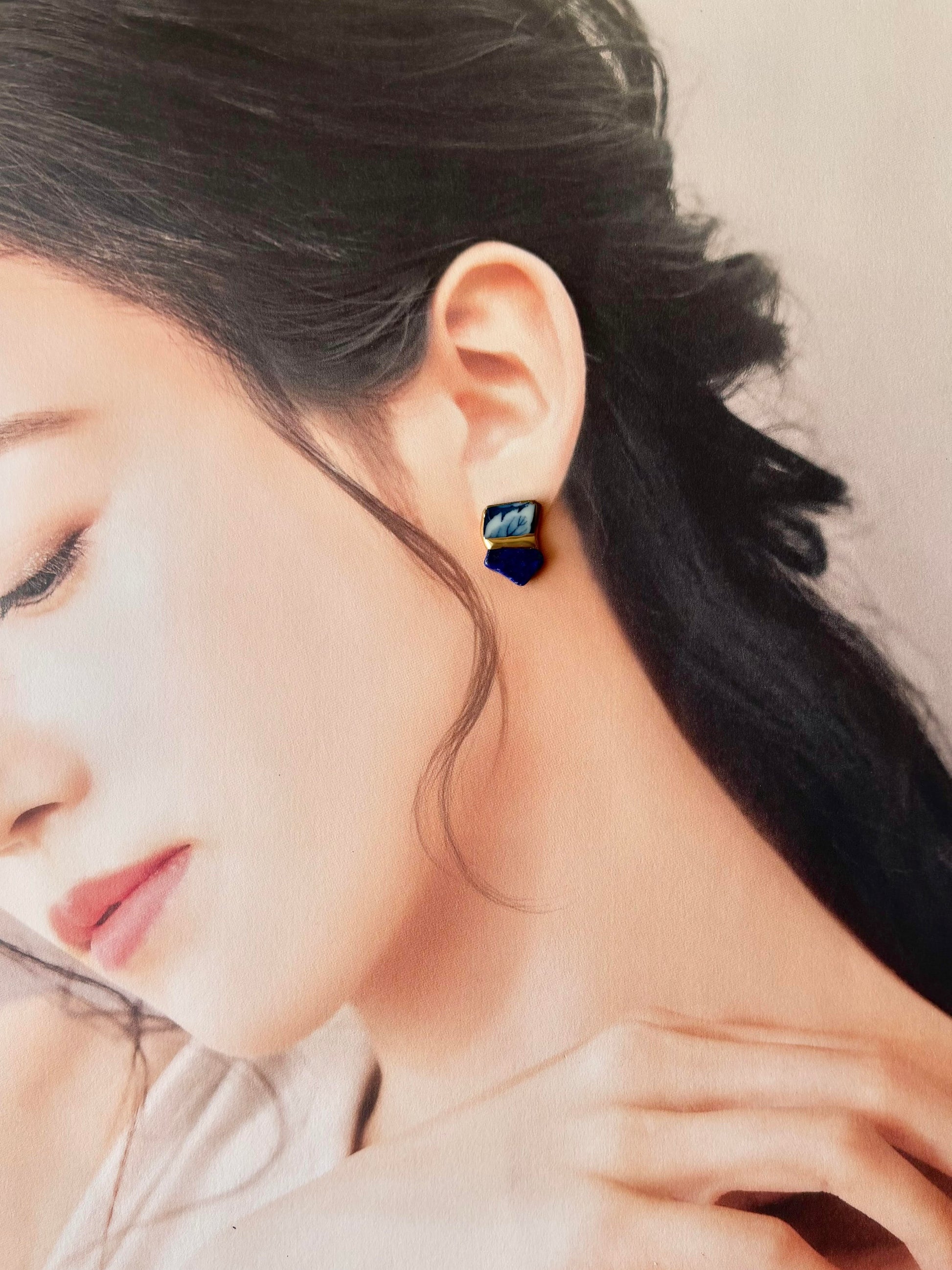 青いリーフ柄がちらりと見える上品な陶片にラピスラズリを合わせました。