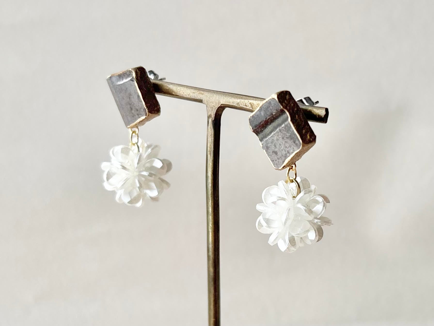 唐津焼 金継ぎ サージカルステンレスピアス 茶色 フラワーボール 揺れる 伝統工芸 #431